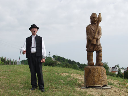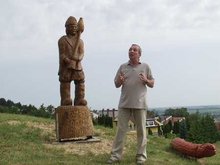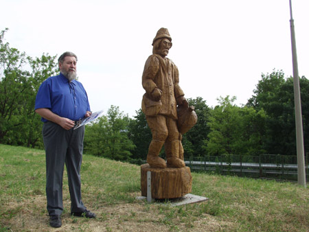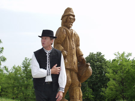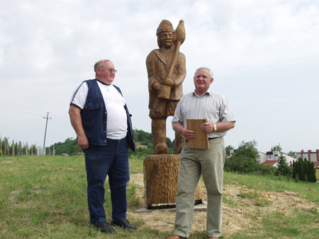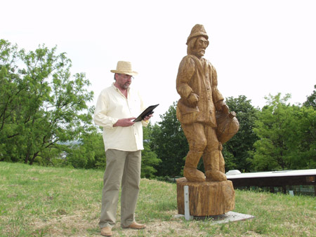 Az alkotásokat átadja: Törő György fafaragó népi iparművész