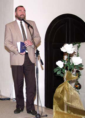 Decsi Kiss János újságíró köszönti a szerzőt és a vendégeket.
